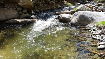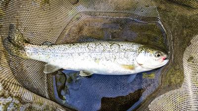 The rainbow is a bit beat up but I caught him on the Tenkarabum 36 using 3.6 meters of #3 level line and a cased caddis with tungsten beadhead. It was so easy to cast. The photo of the Brown was caught on my Daiwa Sagiri 39MC using a glass bead Ishigaki Kebari.