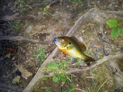 Finally, I caught 3 bluegill on a blue killer bug tied with the blue yarn provided by Chris, These were my first fish caught using a blue yarn fly.