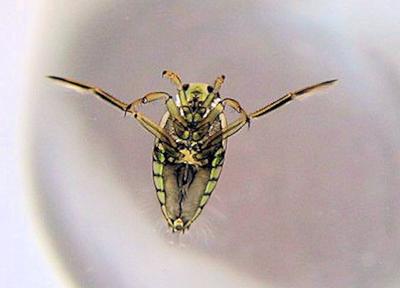 Went out to some new water this morning. The minnows weren't biting but the back swimmers were voracious. I caught two of these water boatman on tanago hooks. These water bugs were 3/8" to 1/2" long and aggressive. I brought this one home to photograph it. Should've left the hook in its mouth for believability.